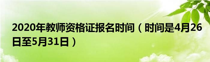 1、 2020年報名時間為4月26日至5月31日。下半年中小學教師資格考試時間安排:筆試報名時間:2020年9月上旬(具體安排以各省級考試機構報名公告為準)。