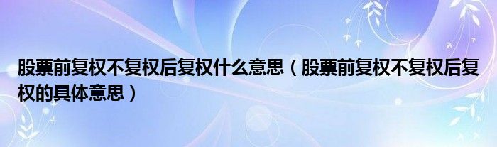 大家好,小帥來為大家解答以上問題。股票前復權不復權后復權什么意思,股票前復權不復權后復權的具體意思很多人還不知道,現在讓我們一起來看看吧!