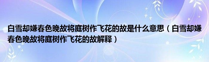 大家好,小帥來為大家解答以上問題。白雪卻嫌春色晚故將庭樹作飛花的故是什么意思,白雪卻嫌春色晚故將庭樹作飛花的故解釋很多人還不知道,現在讓我們一起來看看吧!