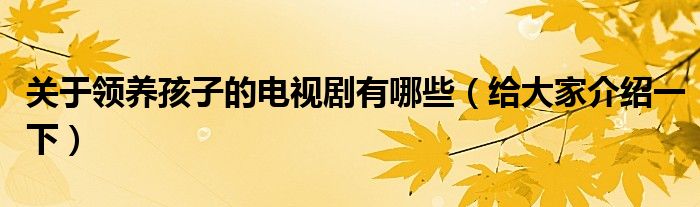 大家好,小帥來為大家解答以上問題。關于領養孩子的電視劇有哪些,給大家介紹一下很多人還不知道,現在讓我們一起來看看吧!