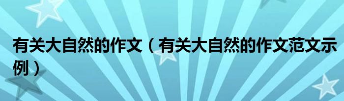 大家好,小帥來為大家解答以上問題。有關大自然的作文,有關大自然的作文范文示例很多人還不知道,現在讓我們一起來看看吧!