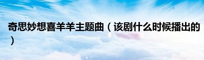 大家好,小帥來為大家解答以上問題。奇思妙想喜羊羊主題曲,該劇什么時候播出的很多人還不知道,現在讓我們一起來看看吧!