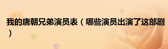 大家好,小帥來為大家解答以上問題。我的唐朝兄弟演員表,哪些演員出演了這部劇很多人還不知道,現在讓我們一起來看看吧!