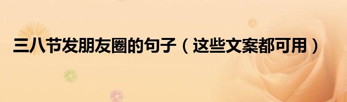 大家好,小帥來為大家解答以上問題。三八節發朋友圈的句子,這些文案都可用很多人還不知道,現在讓我們一起來看看吧!