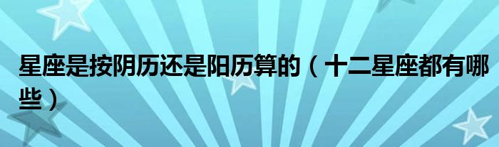 大家好,小帥來為大家解答以上問題。星座是按陰歷還是陽歷算的,十二星座都有哪些很多人還不知道,現在讓我們一起來看看吧!