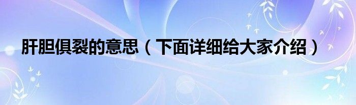 大家好,小帥來為大家解答以上問題。肝膽俱裂的意思,下面詳細給大家介紹很多人還不知道,現在讓我們一起來看看吧!