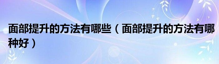 大家好,小帥來(lái)為大家解答以上問(wèn)題。面部提升的方法有哪些,面部提升的方法有哪種好很多人還不知道,現(xiàn)在讓我們一起來(lái)看看吧!
