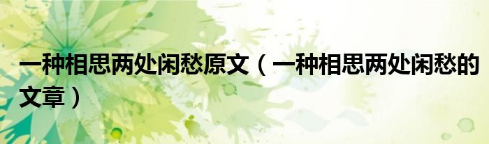 大家好,小帥來為大家解答以上問題。一種相思兩處閑愁原文,一種相思兩處閑愁的文章很多人還不知道,現在讓我們一起來看看吧!