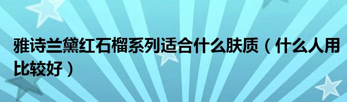 大家好,小帥來(lái)為大家解答以上問(wèn)題。雅詩(shī)蘭黛紅石榴系列適合什么膚質(zhì),什么人用比較好很多人還不知道,現(xiàn)在讓我們一起來(lái)看看吧!