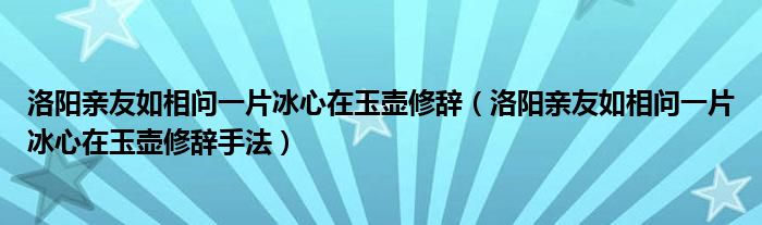 大家好,小帥來為大家解答以上問題。洛陽親友如相問一片冰心在玉壺修辭,洛陽親友如相問一片冰心在玉壺修辭手法很多人還不知道,現在讓我們一起來看看吧!