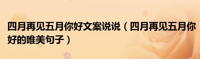 大家好,小帥來為大家解答以上問題。四月再見五月你好文案說說,四月再見五月你好的唯美句子很多人還不知道,現在讓我們一起來看看吧!