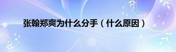 大家好,小帥來為大家解答以上問題。張翰鄭爽為什么分手,什么原因很多人還不知道,現在讓我們一起來看看吧!