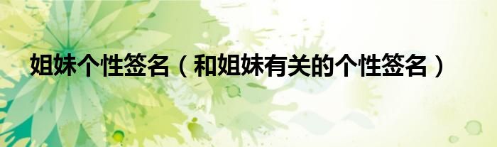 大家好,小帥來為大家解答以上問題。姐妹個性簽名,和姐妹有關的個性簽名很多人還不知道,現在讓我們一起來看看吧!