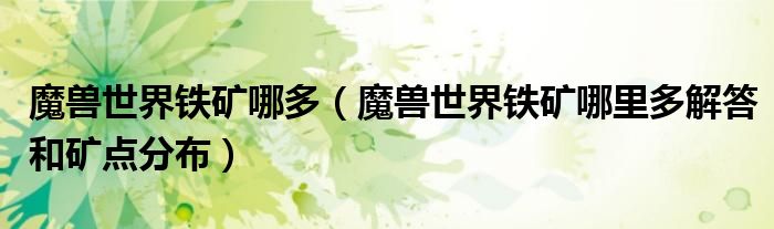 大家好,小帥來為大家解答以上問題。魔獸世界鐵礦哪多,魔獸世界鐵礦哪里多解答和礦點分布很多人還不知道,現在讓我們一起來看看吧!