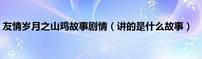 大家好,小帥來為大家解答以上問題。友情歲月之山雞故事劇情,講的是什么故事很多人還不知道,現在讓我們一起來看看吧!