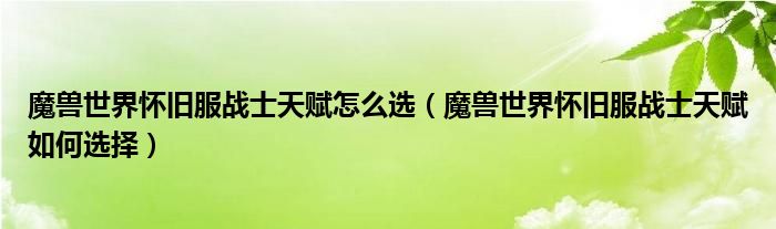 5、 魔獸世界懷舊服裝戰士種族天賦如何選擇懷舊服裝戰士攻略指南