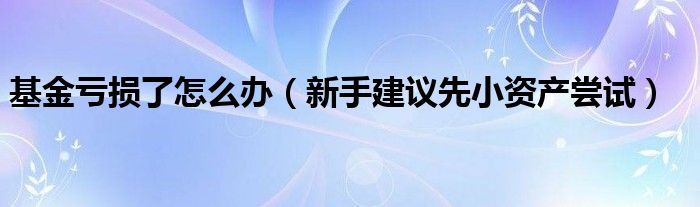 大家好,小帥來為大家解答以上問題。基金虧損了怎么辦,新手建議先小資產嘗試很多人還不知道,現在讓我們一起來看看吧!