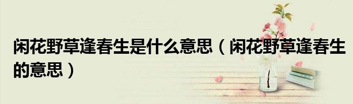 大家好,小帥來為大家解答以上問題。閑花野草逢春生是什么意思,閑花野草逢春生的意思很多人還不知道,現在讓我們一起來看看吧!