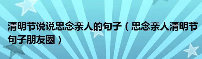 大家好,小帥來為大家解答以上問題。清明節說說思念親人的句子,思念親人清明節句子朋友圈很多人還不知道,現在讓我們一起來看看吧!