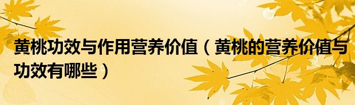 大家好,小帥來為大家解答以上問題。黃桃功效與作用營養價值,黃桃的營養價值與功效有哪些很多人還不知道,現在讓我們一起來看看吧!