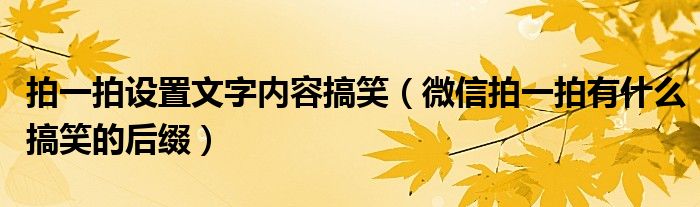 大家好,小帥來為大家解答以上問題。拍一拍設置文字內容搞笑,微信拍一拍有什么搞笑的后綴很多人還不知道,現在讓我們一起來看看吧!