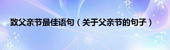 大家好,小帥來為大家解答以上問題。致父親節最佳語句,關于父親節的句子很多人還不知道,現在讓我們一起來看看吧!