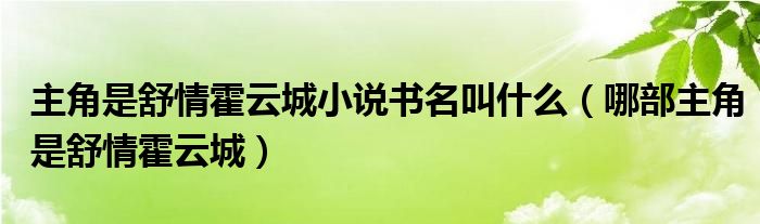 大家好,小帥來為大家解答以上問題。主角是舒情霍云城小說書名叫什么,哪部主角是舒情霍云城很多人還不知道,現在讓我們一起來看看吧!