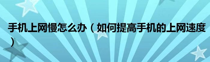 大家好,小帥來為大家解答以上問題。手機上網慢怎么辦,如何提高手機的上網速度很多人還不知道,現在讓我們一起來看看吧!