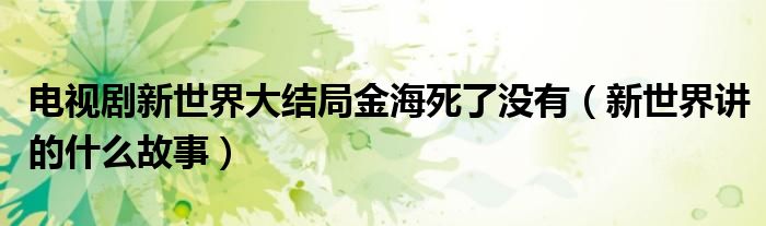 大家好,小帥來為大家解答以上問題。電視劇新世界大結(jié)局金海死了沒有,新世界講的什么故事很多人還不知道,現(xiàn)在讓我們一起來看看吧!