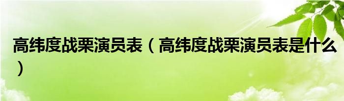 大家好,小帥來為大家解答以上問題。高緯度戰栗演員表,高緯度戰栗演員表是什么很多人還不知道,現在讓我們一起來看看吧!
