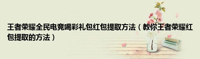 大家好,小帥來為大家解答以上問題。王者榮耀全民電競喝彩禮包紅包提取方法,教你王者榮耀紅包提取的方法很多人還不知道,現在讓我們一起來看看吧!