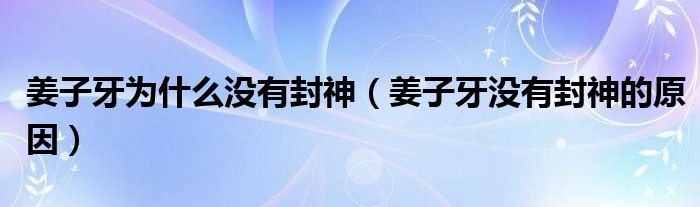 1、 姜子牙不成仙,不封神,其實(shí)印證了“天意”二字。姜子牙沒(méi)下山的時(shí)候,世紀(jì)初的佛祖曾說(shuō)姜子牙人生太淺,不能成仙。但被派到人間的人,只能享受人間的福報(bào),難以封神之道!