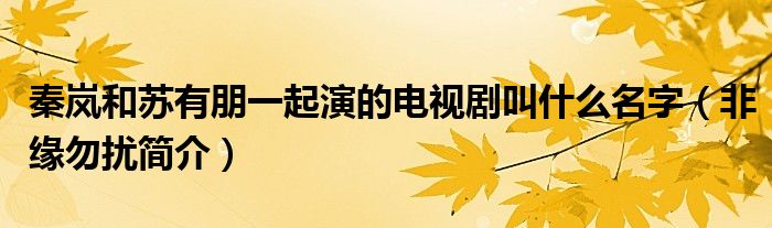 大家好,小帥來為大家解答以上問題。秦嵐和蘇有朋一起演的電視劇叫什么名字,非緣勿擾簡介很多人還不知道,現在讓我們一起來看看吧!