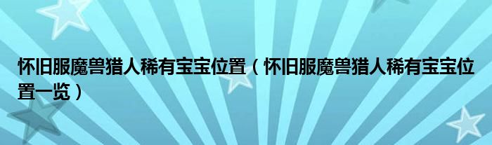 大家好,小帥來為大家解答以上問題。懷舊服魔獸獵人稀有寶寶位置,懷舊服魔獸獵人稀有寶寶位置一覽很多人還不知道,現在讓我們一起來看看吧!