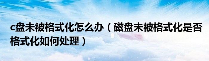 大家好,小帥來為大家解答以上問題。c盤未被格式化怎么辦,磁盤未被格式化是否格式化如何處理很多人還不知道,現在讓我們一起來看看吧!