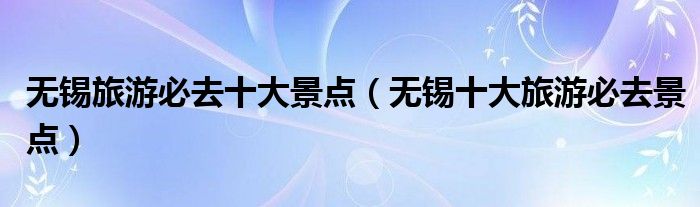大家好,小帥來為大家解答以上問題。無錫旅游必去十大景點,無錫十大旅游必去景點很多人還不知道,現在讓我們一起來看看吧!
