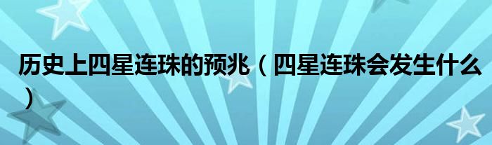大家好,小帥來為大家解答以上問題。歷史上四星連珠的預兆,四星連珠會發生什么很多人還不知道,現在讓我們一起來看看吧!