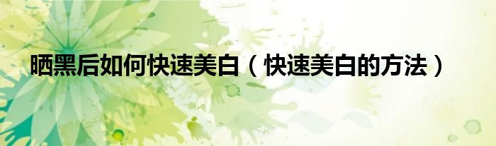 大家好,小帥來為大家解答以上問題。曬黑后如何快速美白,快速美白的方法很多人還不知道,現在讓我們一起來看看吧!