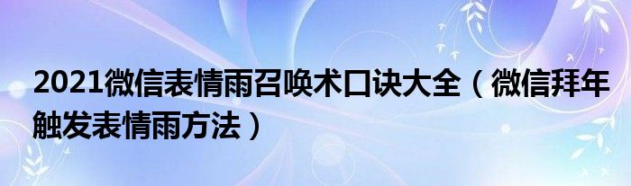 大家好,小帥來為大家解答以上問題。2021微信表情雨召喚術口訣大全,微信拜年觸發表情雨方法很多人還不知道,現在讓我們一起來看看吧!