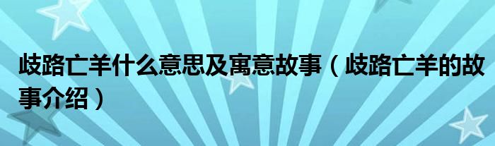 大家好,小帥來(lái)為大家解答以上問(wèn)題。歧路亡羊什么意思及寓意故事,歧路亡羊的故事介紹很多人還不知道,現(xiàn)在讓我們一起來(lái)看看吧!