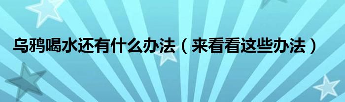 大家好,小帥來為大家解答以上問題。烏鴉喝水還有什么辦法,來看看這些辦法很多人還不知道,現在讓我們一起來看看吧!