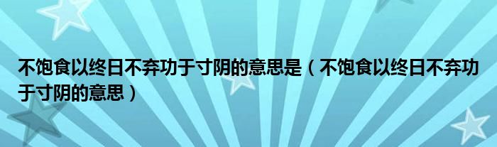 大家好,小帥來為大家解答以上問題。不飽食以終日不棄功于寸陰的意思是,不飽食以終日不棄功于寸陰的意思很多人還不知道,現在讓我們一起來看看吧!