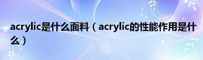 大家好,小帥來為大家解答以上問題。acrylic是什么面料,acrylic的性能作用是什么很多人還不知道,現(xiàn)在讓我們一起來看看吧!