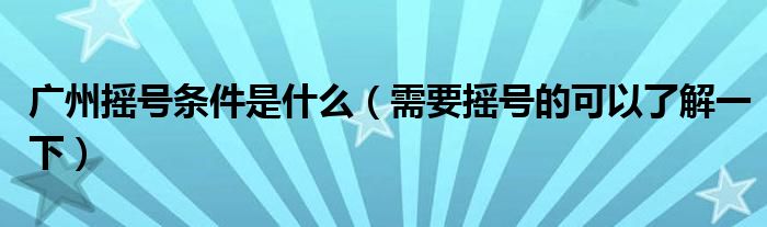 大家好,小帥來為大家解答以上問題。廣州搖號條件是什么,需要搖號的可以了解一下很多人還不知道,現在讓我們一起來看看吧!