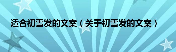 大家好,小帥來為大家解答以上問題。適合初雪發(fā)的文案,關于初雪發(fā)的文案很多人還不知道,現在讓我們一起來看看吧!