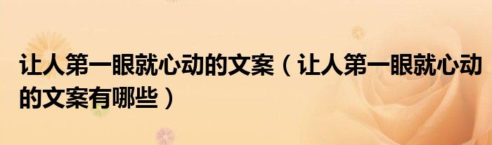 大家好,小帥來為大家解答以上問題。讓人第一眼就心動的文案,讓人第一眼就心動的文案有哪些很多人還不知道,現(xiàn)在讓我們一起來看看吧!