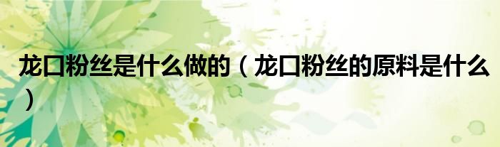大家好,小帥來為大家解答以上問題。龍口粉絲是什么做的,龍口粉絲的原料是什么很多人還不知道,現在讓我們一起來看看吧!