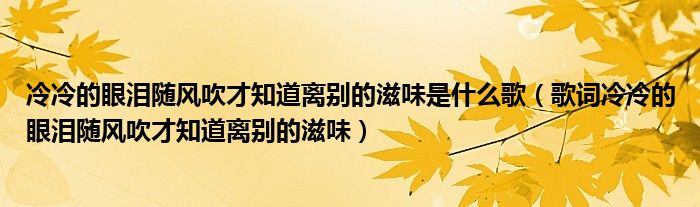 大家好,小帥來為大家解答以上問題。冷冷的眼淚隨風吹才知道離別的滋味是什么歌,歌詞冷冷的眼淚隨風吹才知道離別的滋味很多人還不知道,現在讓我們一起來看看吧!