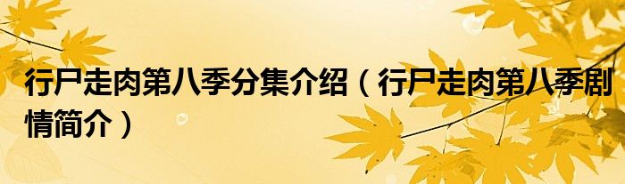 大家好,小帥來為大家解答以上問題。行尸走肉第八季分集介紹,行尸走肉第八季劇情簡介很多人還不知道,現(xiàn)在讓我們一起來看看吧!