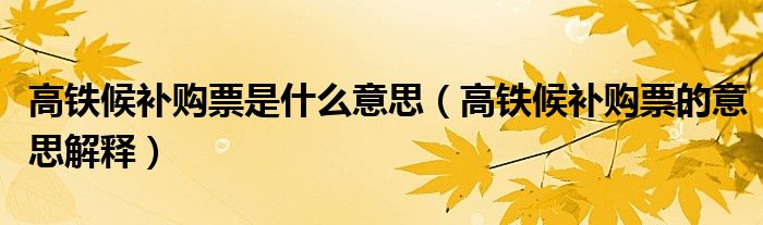 大家好,小帥來為大家解答以上問題。高鐵候補購票是什么意思,高鐵候補購票的意思解釋很多人還不知道,現在讓我們一起來看看吧!